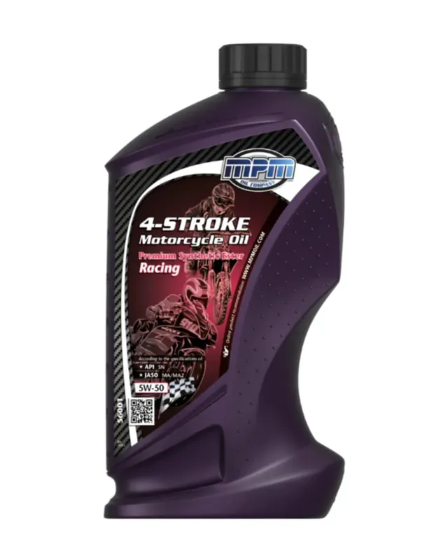 MPM 4-Stroke Motorcycle Oil 5W-50 Premium Synthetic Ester Technologie is geschikt voor lucht- en watergekoelde 4-takt motorfietsmotoren in straat- en wedstrijdgebruik. Aan deze olie zijn hoge eisen gesteld in een breed viscositeit bereik. De additieven in combinatie met esters zijn perfect gebalanceerd in deze olie en geeft een hoogwaardige bescherming aan de motor bij zeer hoge toerentallen en onder zware omstandigheden. Deze multigrade SAE 5W-50 motorolie is ontwikkeld voor Racing, door de speciale wrijvingsverbeteraar geeft deze olie de optimale grip voor natte plaatkoppelingen. Hierdoor heeft deze olie het voordeel om in wedstrijden de perfecte start te realiseren. Hoewel deze olie ontwikkeld is voor race- en crossmotoren, is het ook geschikt voor standaard voor weg- en terreinmotoren. Notitie: Deze is ontwikkeld voor motorfietsen met of zonder, natte plaatkoppelingen en is terugwaarts te gebruiken met de API SG-, SH-, SJ-, SL- en SM-specificaties.