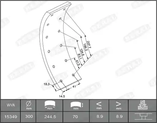 Binnen lengte [mm]: 288, 245 Buiten lengte [mm]: 307, 261 Remblok/voering: 2e overmaat