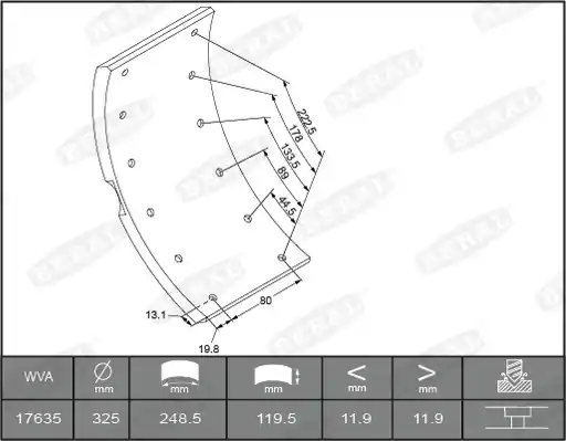 Binnen lengte [mm]: 288, 249 Buiten lengte [mm]: 311, 269 Remblok/voering: Standaardmaat