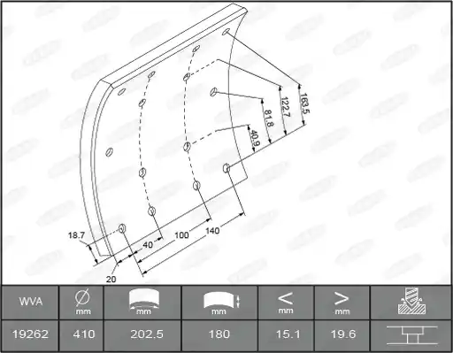 Binnen lengte [mm]: 201 Buiten lengte [mm]: 222 Remblok/voering: Standaardmaat, Met sikkelvoering