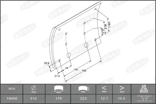 Binnen lengte [mm]: 177 Buiten lengte [mm]: 192 Remblok/voering: 2e overmaat, Met sikkelvoering